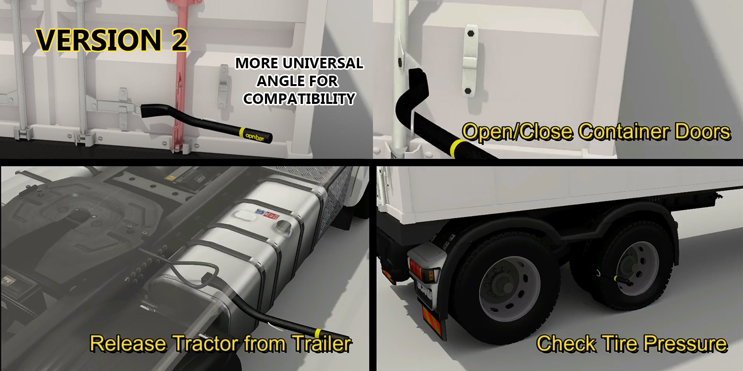 Did you know that cargo and insurance companies lose billions a year due to operator injury? We introduce a 3 in 1 tool, designed, developed, and manufactured for opening trucking and shipping containers with the safety of the driver, operator, and worker foremost in mind. As a Door Latch Handle Extender, it is a safety leverage bar to assist the driver operator in opening and closing shipping container doors. Great for opening shipping and cargo containers that are rusted or iced over! The Tire Thumper function assists the driver operator in a quick method of evaluating properly inflated tires for truck driver safety. Properly inflated tires make a loud, sharp thud. Poorly inflated tires make a dull thud. The Fifth Wheel Release Hook assists the driver in releasing the fifth wheel which can cause neck, shoulder and back injury as well as, damaging your clothes with grease, oil, and road grime. This pull hook will eliminate these problems. For more information or for wholesale orders, visit opnbar.com